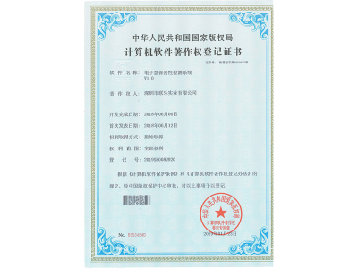 計算機軟件著作權登記證書(電子盤保密性)