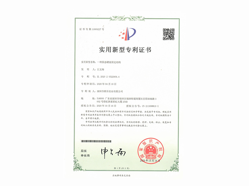 實用新型專利證書-一種固態硬盤固定結構